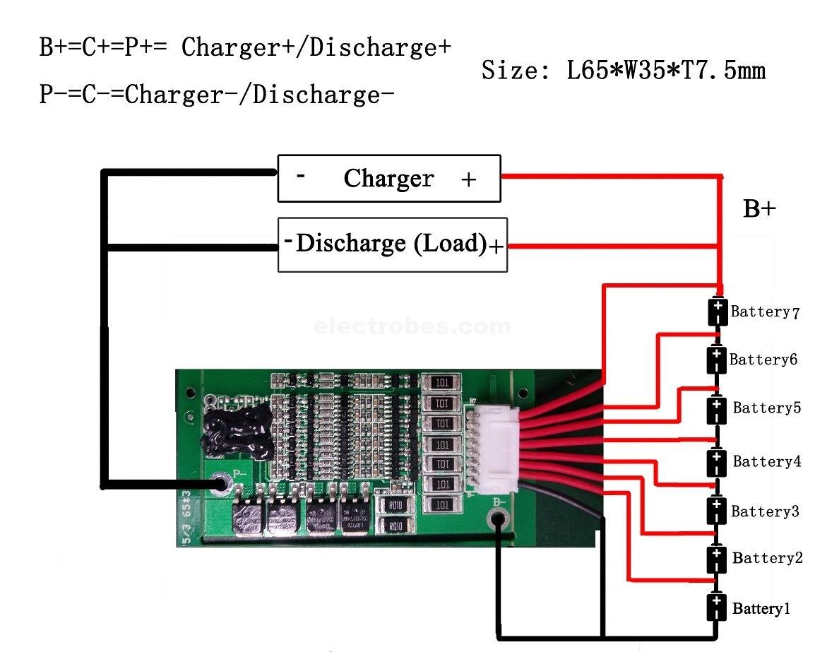 1 x 7S 24V 20A Balancing Li-ion 18650 BMS Protection Board