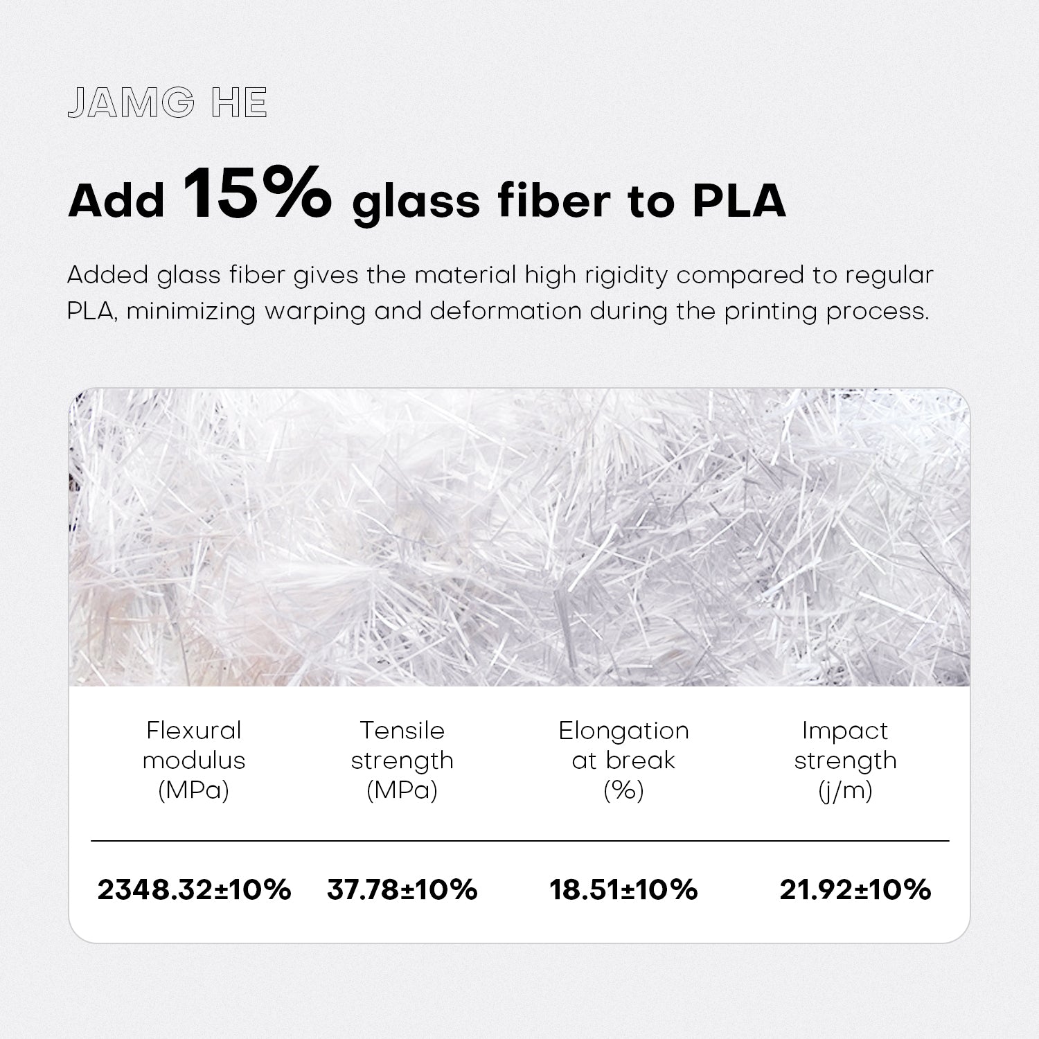 JAMG HE Glass Fiber PLA Filament 1.75mm 3D Printer Filament 1kg/Roll