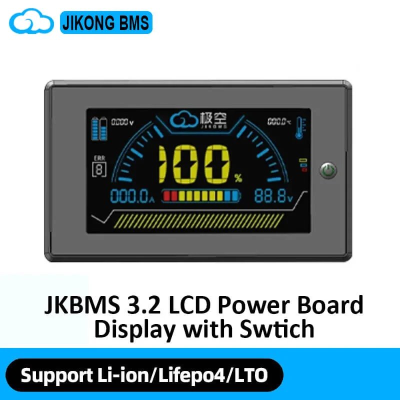 The JK BMS 3.2-Inch LCD Display is a high-quality monitoring screen designed specifically for JK Smart BMS Battery Management Systems. This display provides real-time battery information including cell voltage, pack voltage, current, temperature, SOC, and system status.