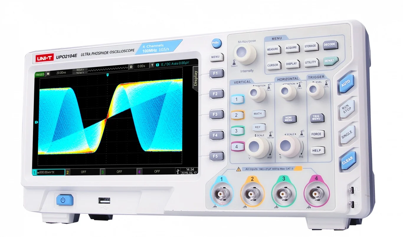 UNI-T UPO2104E Ultra Phosphor Digital Oscilloscopes 4 channel 100MHz 8inch LCD 1GS/s